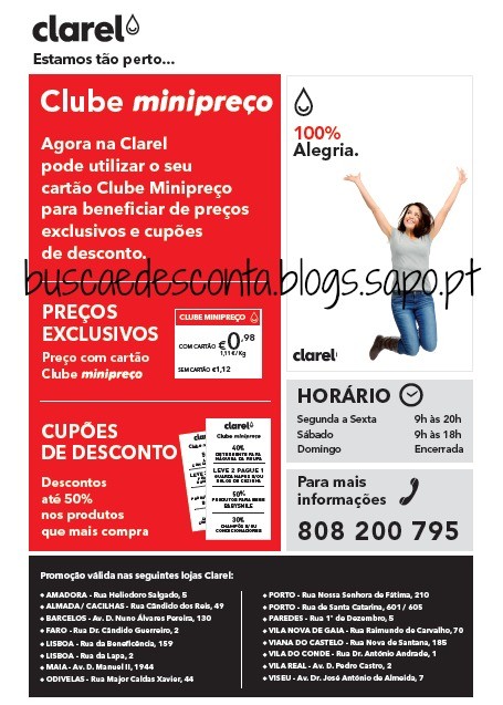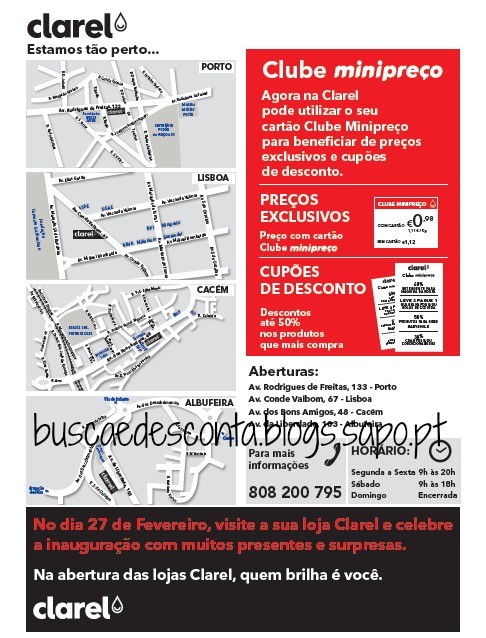 Promoções a decorrer na abertura das novas lojas Clarel (antigas lojas Schlecker) nas seguintes localizações: