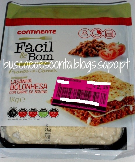 Usando o Cupão Continente de 50% de desconto em cartão na compra desta lasanha, o artigo ficou por 1,19€.