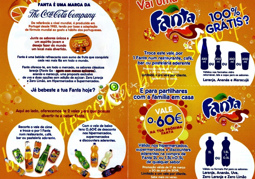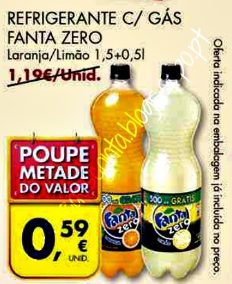 O produto vai estar em promoção no Pingo Doce a 0,59€ a unidade de 29 de Abril a 5 de Maio. Podemos juntar os vales Fanta de 0,60€ (recebidos por correio) e trazer o produto grátis, com um crédito de 0,01€!