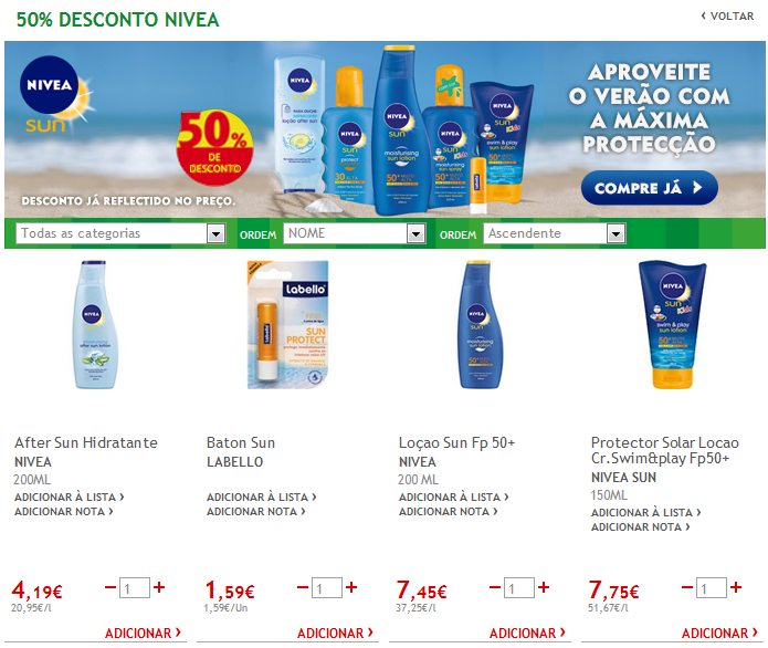 O produto está a 2,62€ no Minipreço até dia 28 de Maio. Podem juntar o vale Nivea de 1,00€ fazendo com que o produto fique a 1,62€. Podem ainda juntar os talões de "x" de desconto em "y" de compras, aumentando assim o desconto!