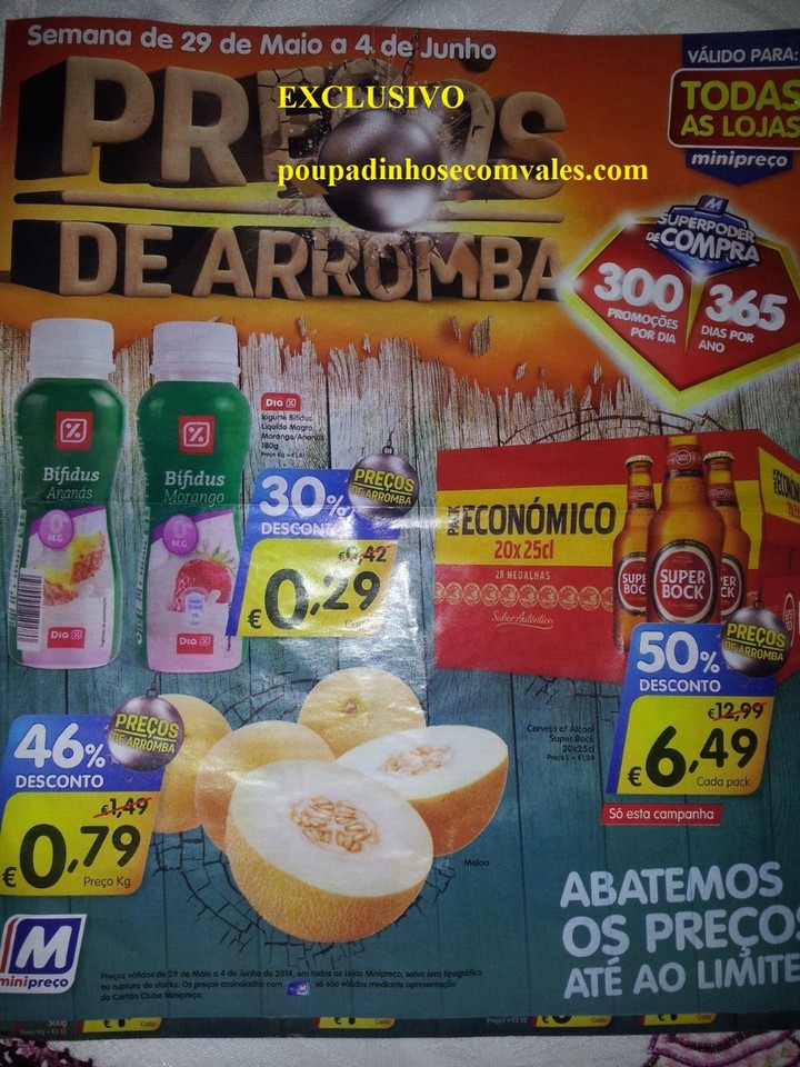 O produto está a 1,95€ no Minipreço até dia 28 de Maio. Podem juntar o vale Branca de Neve de 1,00€ fazendo com que o produto fique a 0,95€. Podem ainda juntar os talões de "x" de desconto em "y" de compras, aumentando assim o desconto!