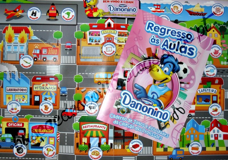 Sem compras nem complicações, o Danonino oferece a todos os pequeninos a Cidade Danonino e 1 Caderno de Jogos e Actividades com uma caderneta das profissões.